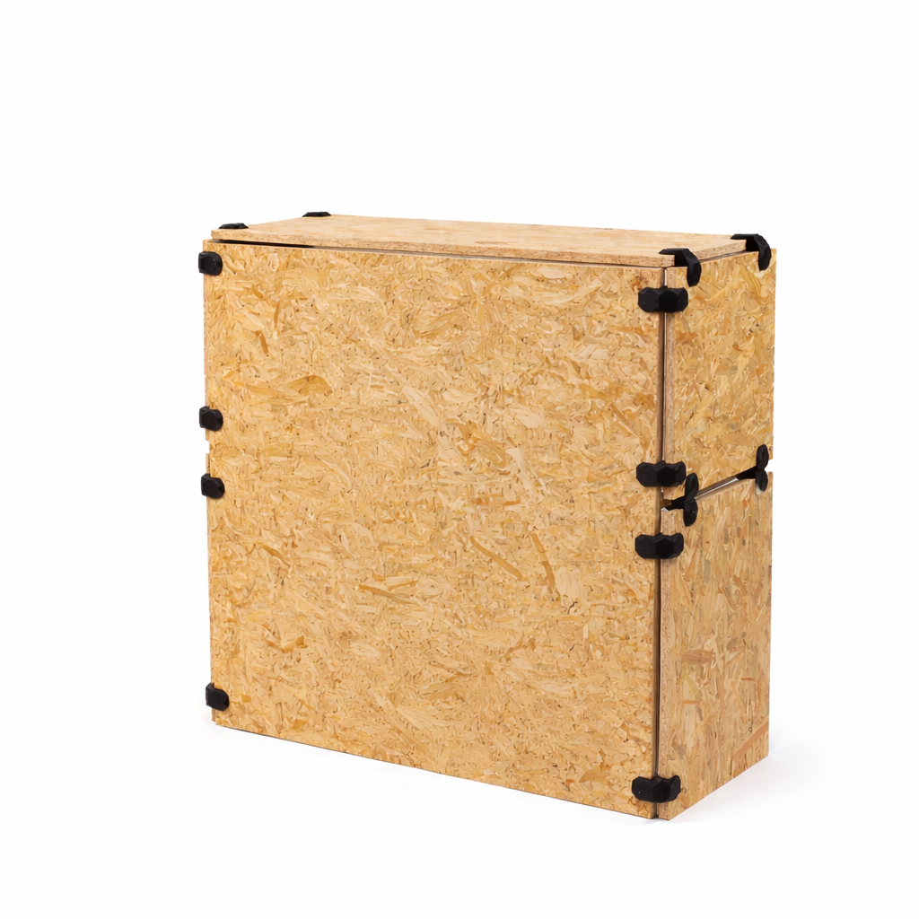 Nous utilisons de l’OSB déclassé, ce qui permet de valoriser une matière existante plutôt que de produire du bois neuf. Une démarche responsable qui limite le gaspillage et donne une seconde vie à un matériau robuste et esthétique.