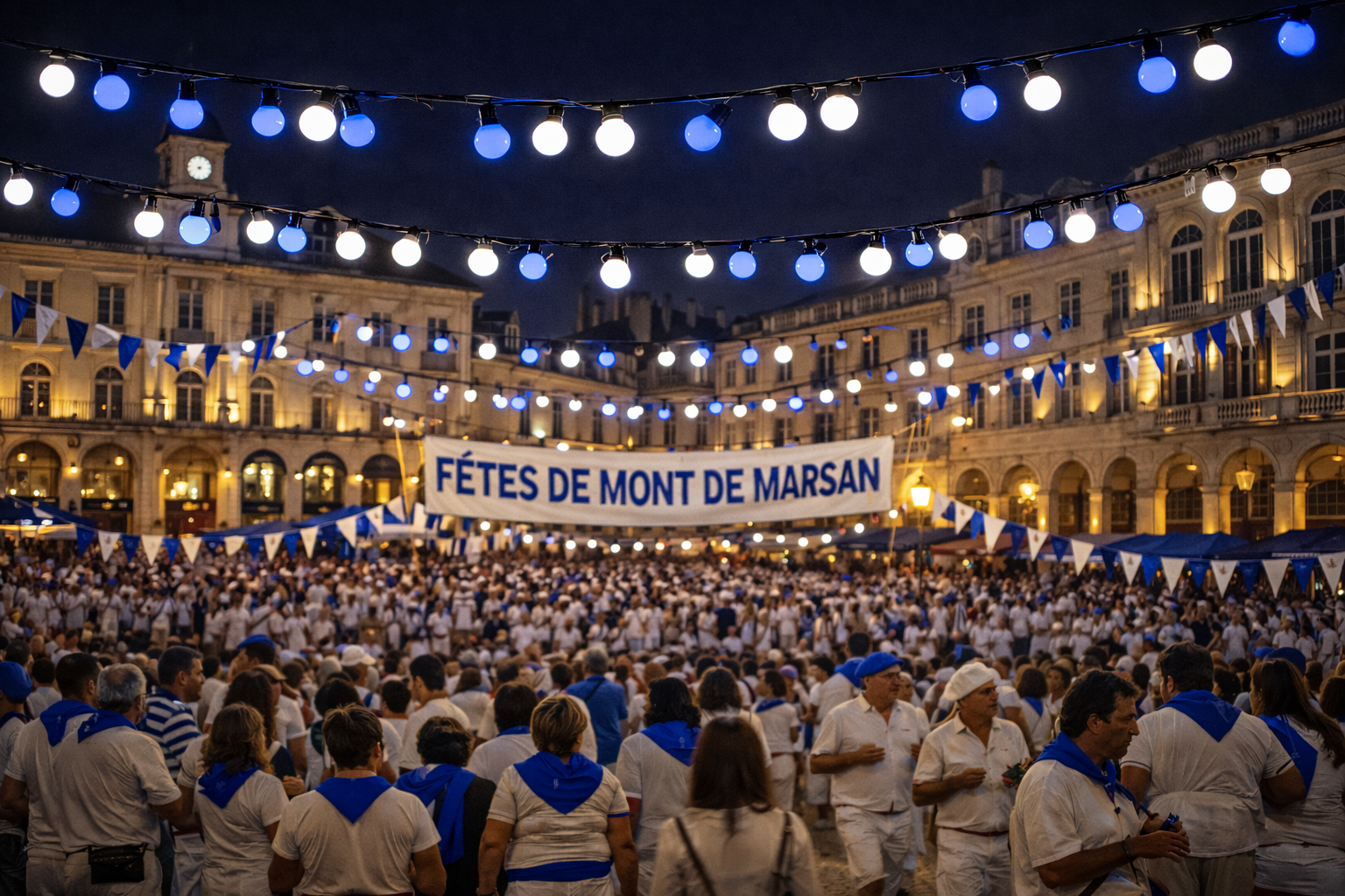 Chaque été, la ville de Mont-de-Marsan s’anime au rythme des incontournables Fêtes de la Madeleine. Les rues se remplissent de festayres vêtus de bleu et blanc, créant une atmosphère festive, conviviale et profondément ancrée dans la tradition landaise. Pour sublimer cette identité visuelle forte et illuminer vos espaces, nous proposons à la location des guirlandes guinguette bleu et blanc froid spécialement conçues pour les férias et grands événements estivaux.