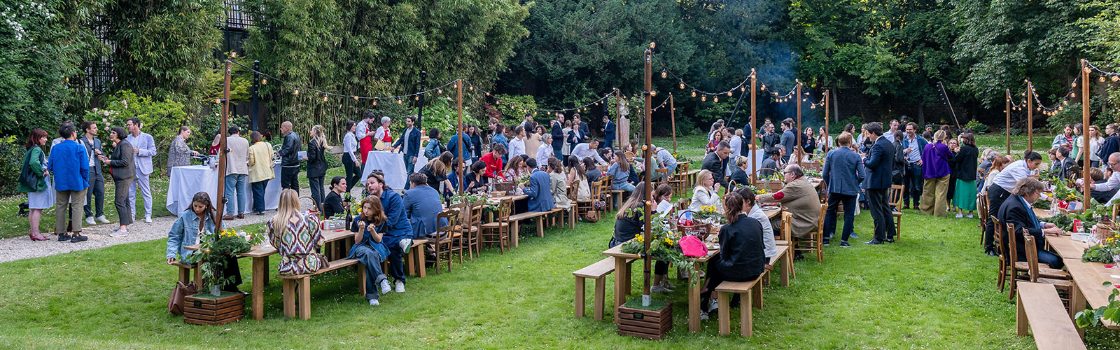 Au-dessus d’eux, une guirlande guinguette illuminait la scène. Ses lumières douces, suspendues entre les arbres centenaires du jardin, créaient une ambiance magique, mêlant l’élégance parisienne et la convivialité des guinguettes d’antan. Les ampoules émettaient une lueur chaude, dansant au rythme d'une légère brise, tandis qu’au loin, un quatuor à cordes jouait une mélodie envoûtante.