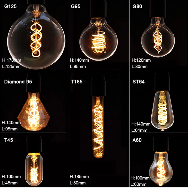 Ampoule à filament en spirale rétro LED 4W E27 A60 T45 ST64 T185 G80 G95 G125 Lampe vintage rétro Éclairage décoratif