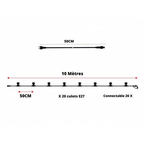 1 Câble de 10m + 20 ampoules + 1 prise d'alimentation de 1,5m