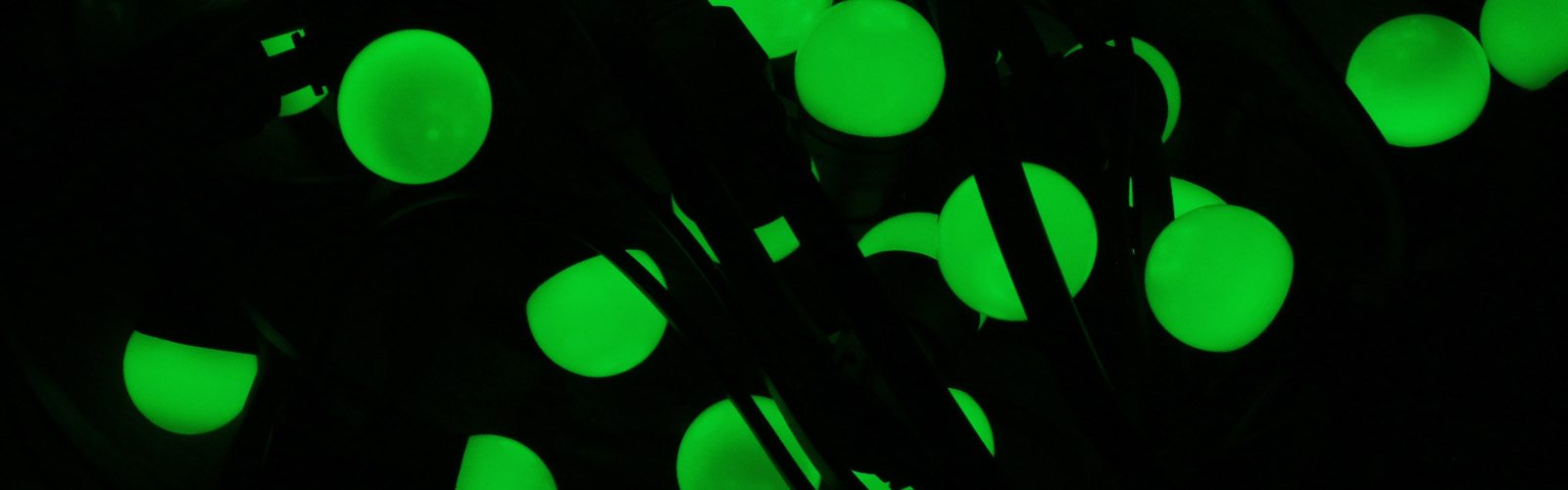 Les guirlandes vertes Ma Guinguette proposées en location sont d'une longueur de 10 mètres pour 20 globes ampoules vertes E27. Connectables entre-elles sur plusieurs centaines de mètres permettant de réaliser l'éclairage complet d'un événement sur une simple prise 16A. Le câble supporte une puissance de 2200w. L'espacement entre les ampoules vertes est de 50 cm afin de conserver une mise en lumière homogène. La guirlande verte est composée d'ampoules leds à globe leds vertes pour une faible consommation. Ces guirlandes répondent à la norme IP44, vous donnant la possibilité de faire des mises en éclairage en extérieur comme en intérieur. Idéal pour un diner dehors en plein été avec l'ensemble de vos convives.