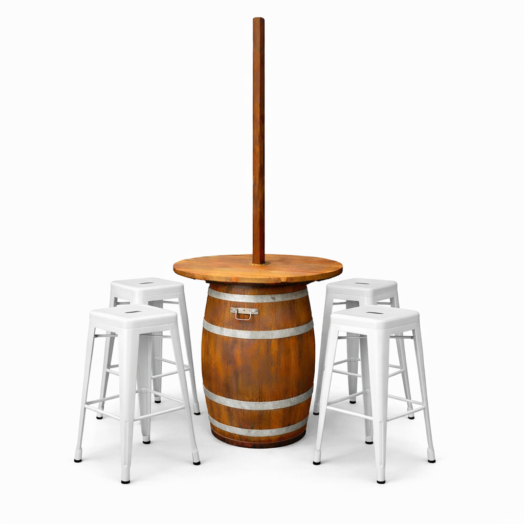 Plus qu’un simple tonneau mat destiné à supporter des guirlandes, notre tonneau mat mange-debout transforme votre aménagement événementiel en un espace à la fois pratique, chaleureux et optimisé. Il ne sert pas uniquement à structurer l’éclairage : il devient un véritable point de rassemblement où vos invités peuvent se restaurer et échanger.
