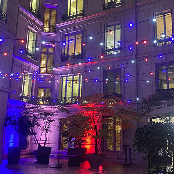 Aussi, une belle réception passe par un éclairage réussi ! Qu'elle soit installée sur un bar, une pergola, ou accrochée sur des totems afin de réaliser un survol de votre espace, la guirlande guinguette "Bleu Blanc Rouge" aux couleurs de la France doit être visible et installée en toute sécurité. Il faut aussi penser à l'électricité et prévoir une rallonge électrique ou une prise relativement proche.